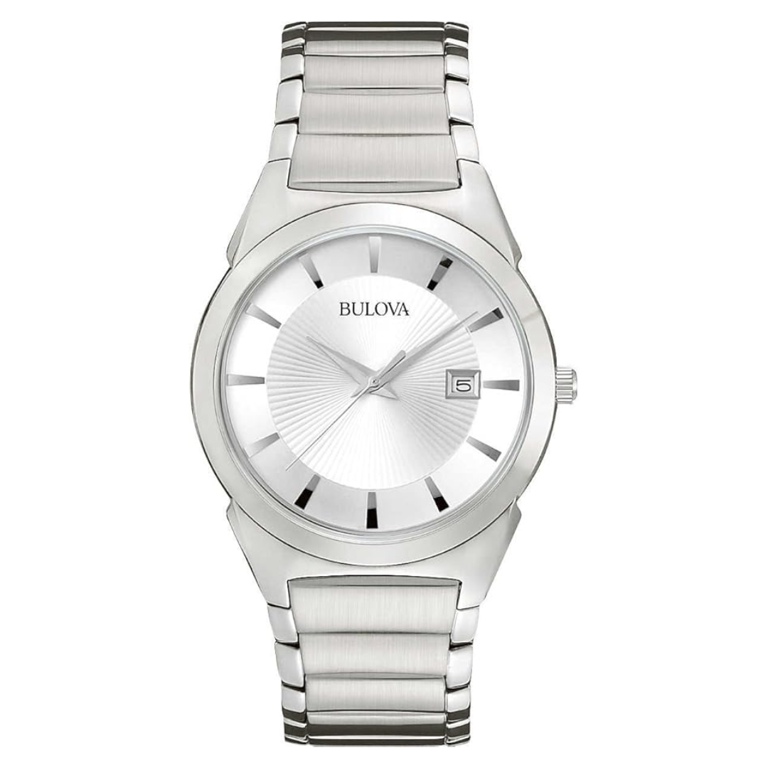 From the Classic Collection. In stainless steel with patterned silver dial, domed crystal, calendar, second hand, and fold-over clasp.