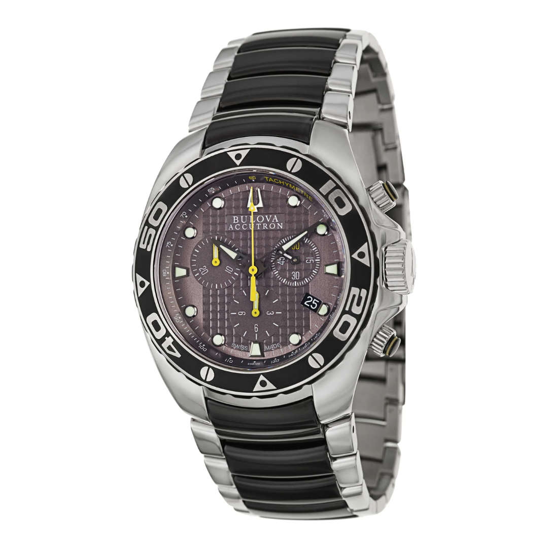 Bulova Accutron, Curacao, Men's Watch, Stainless Steel Case, Stainless Steel and Black Bracelet, Swiss Quartz (Battery-Powered)