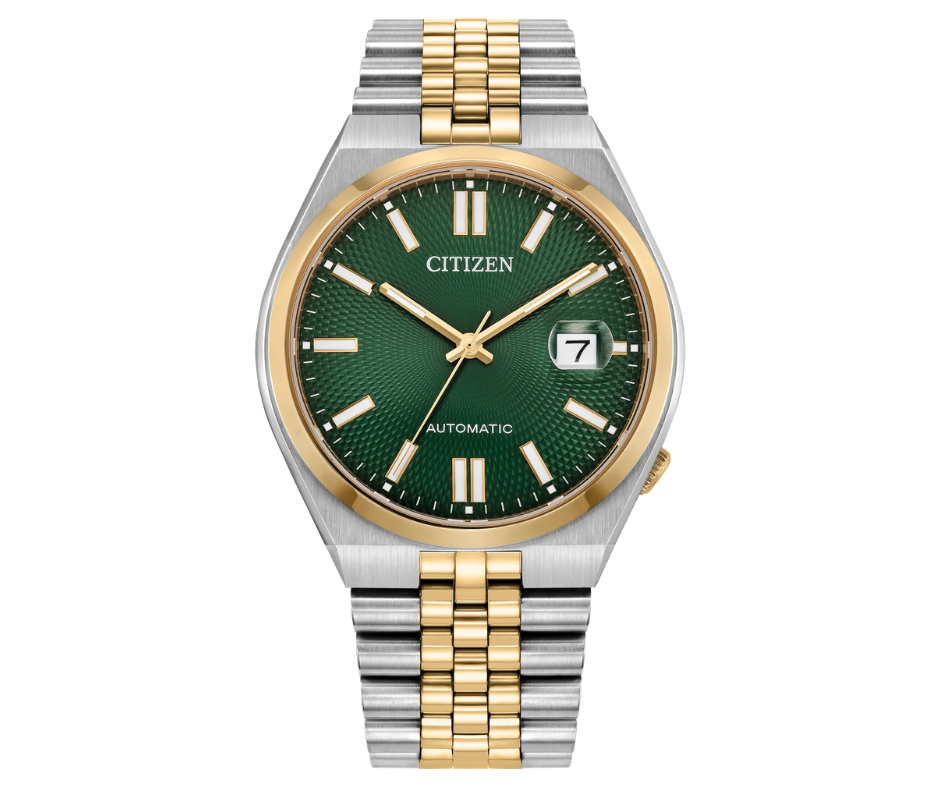 The latest TSUYOSA “60”, brings ultramodern sports styling right to your wrist. Executed in a versatile 40mm footprint, the sophisticated design of the watch makes a strong impression via a two-tone silver- and gold-tone stainless steel case and a seamlessly integrated, five-link bracelet. Underneath an anti-reflective sapphire crystal, the sporty timepiece makes use of a finely machined, sunray green dial, with a 3 o’clock date window and more gold-tone details adding to its eye-catching aesthetic.