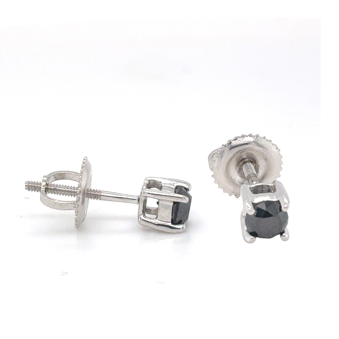 10kt White Gold Black Diamond Stud 1ct Earrings