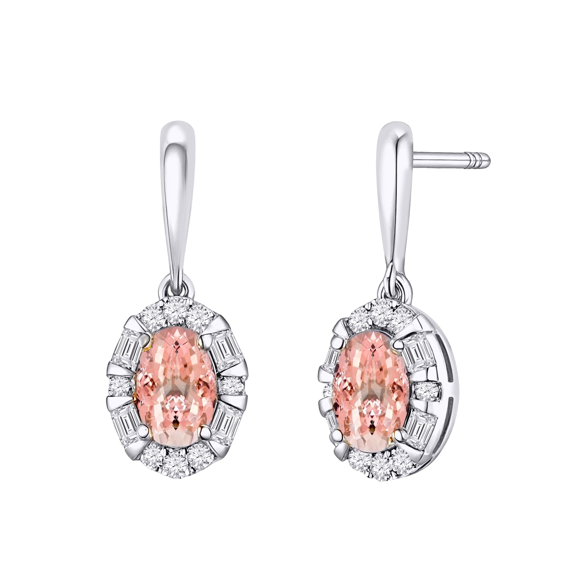 10kt White Gold 0.40 Morganite + 0.50 TW Diamond Earrings