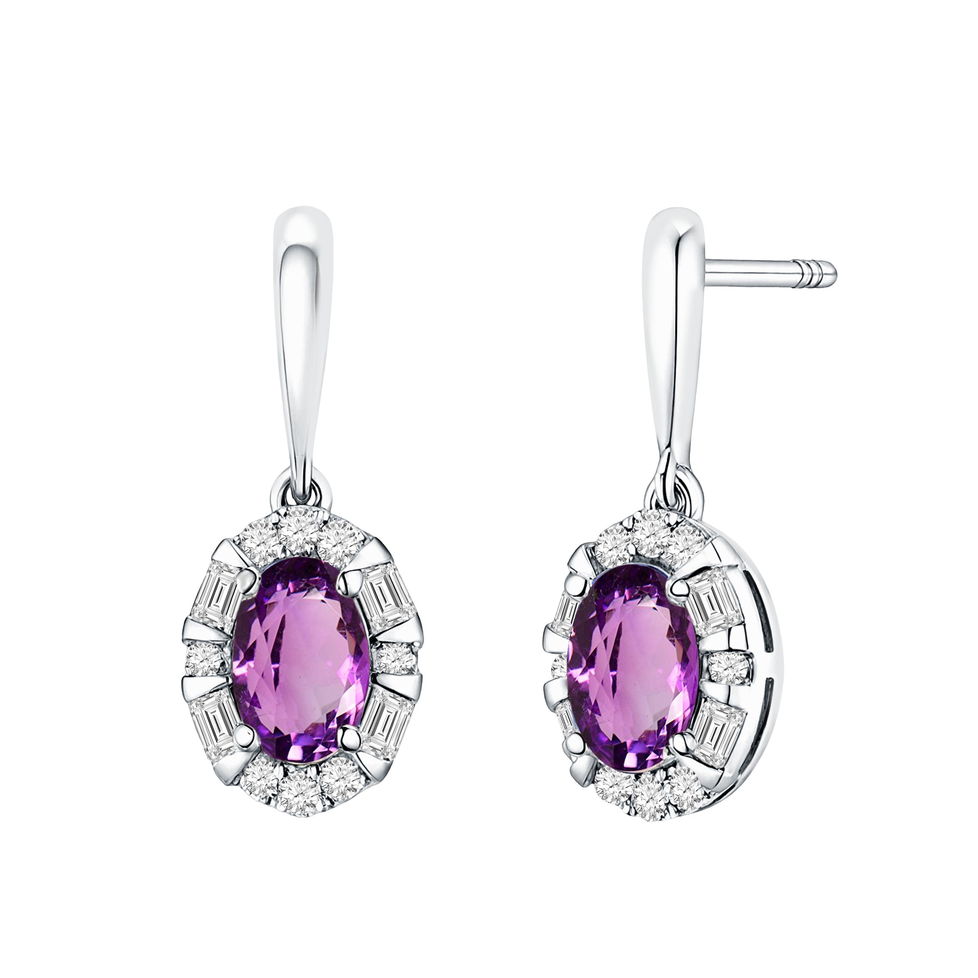 10kt White Gold 0.50 Amethyst + 0.50 TW Diamond Earrings