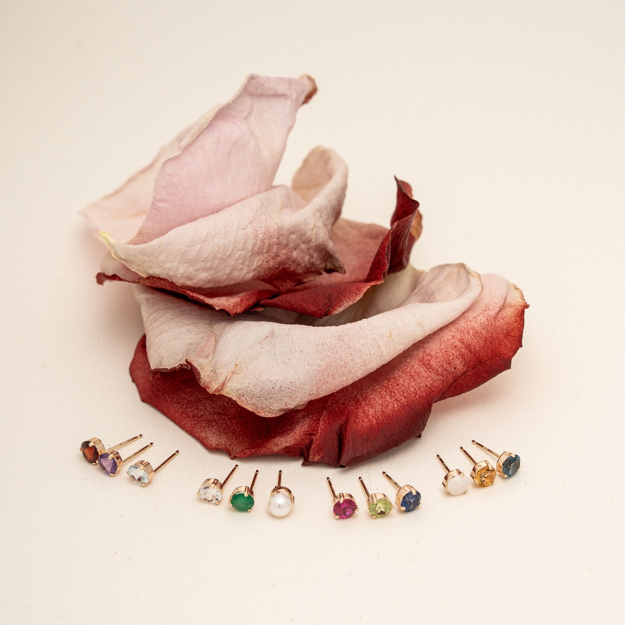 10KT Yellow Gold Lab Grown 4mm 3 Prongs Birthstone Stud Earrings - Special Price