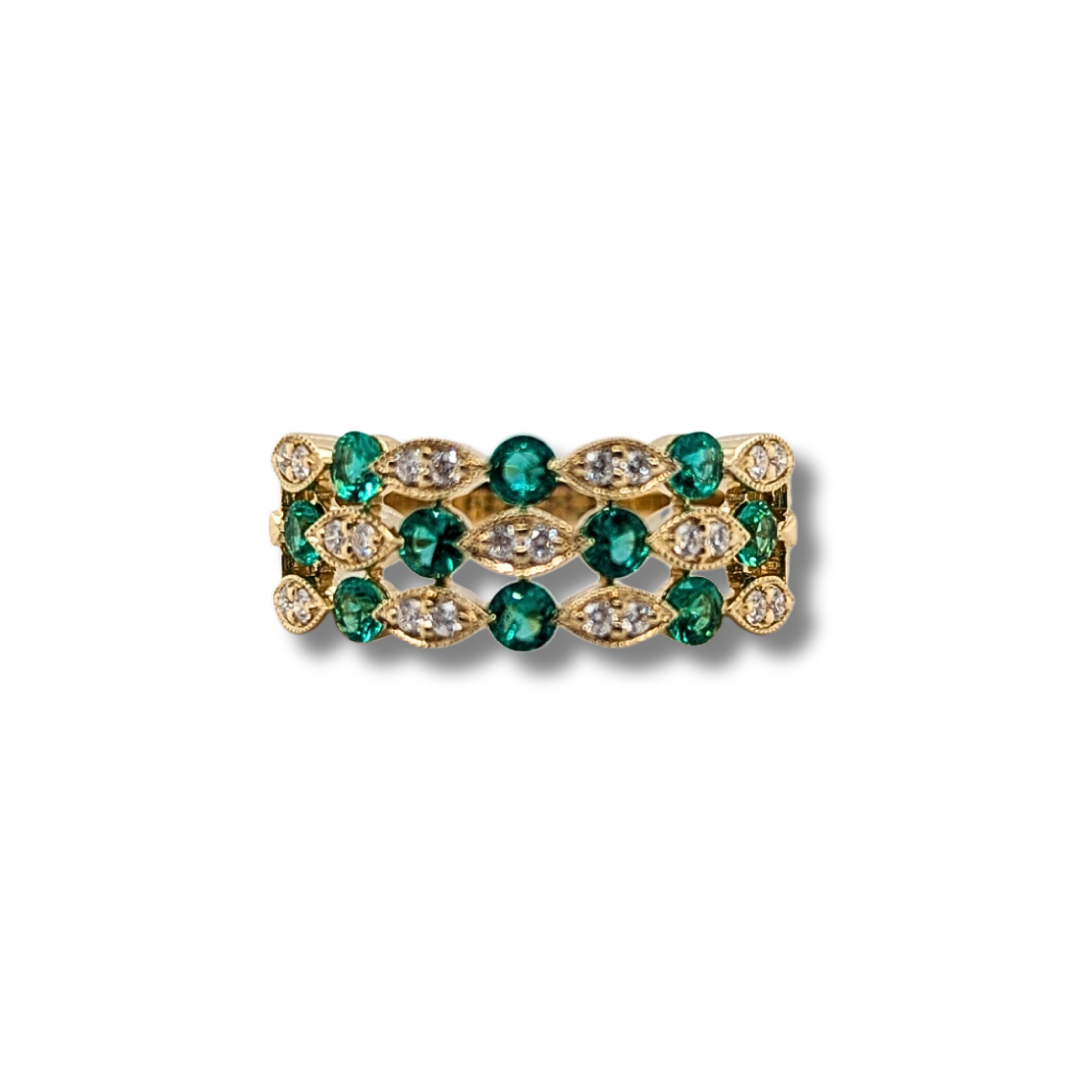 Additional Details: Round Brilliant Emeralds and Diamond ring in white gold