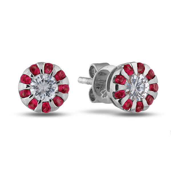 10kt White Gold 0.18 Ruby + 0.23TW Diamond Earrings