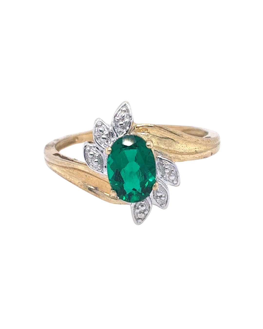 10kt Yellow Gold Synthetic Emerald Fancy Ring