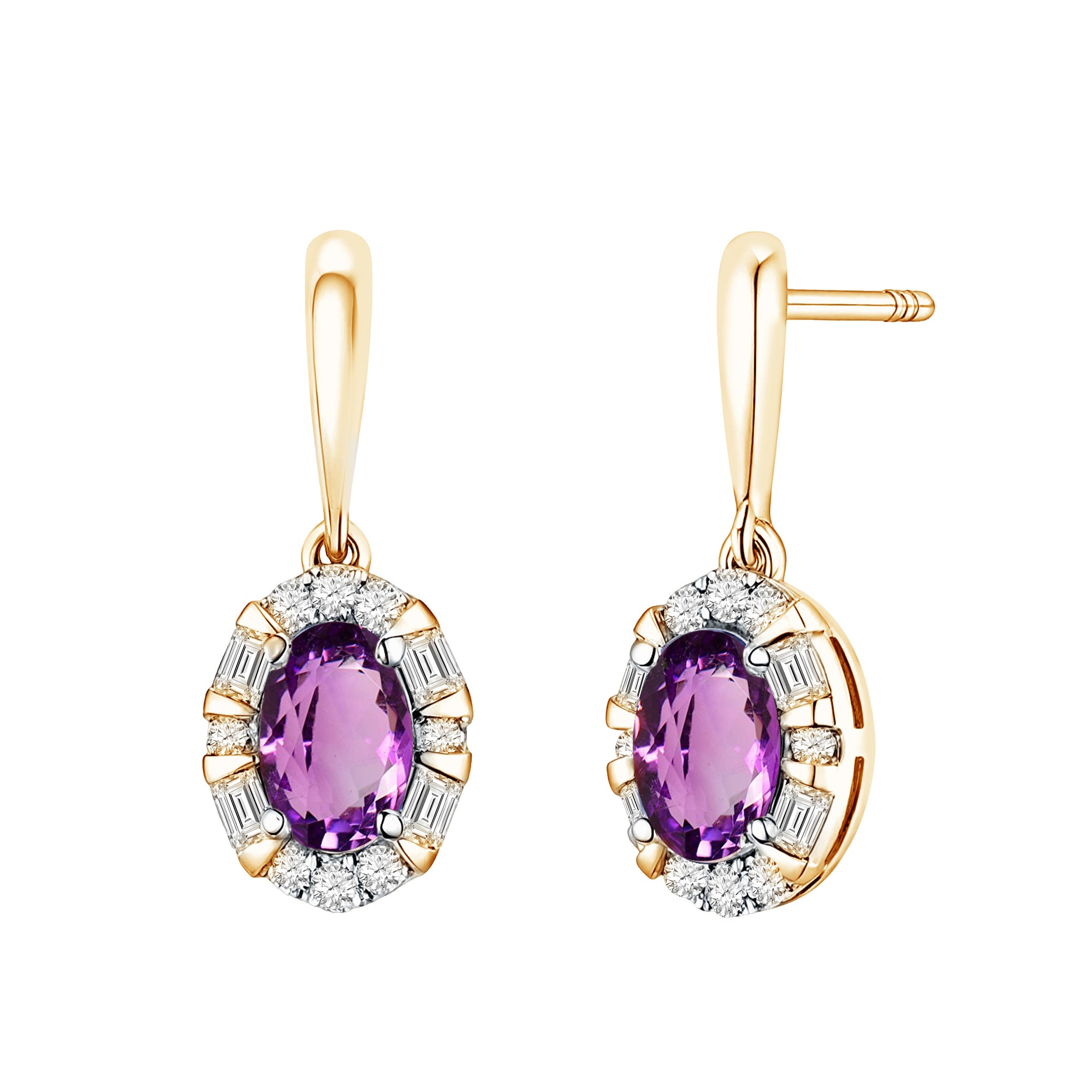 10kt Yellow Gold 0.50 Amethyst + 0.50 TW Diamond Earrings