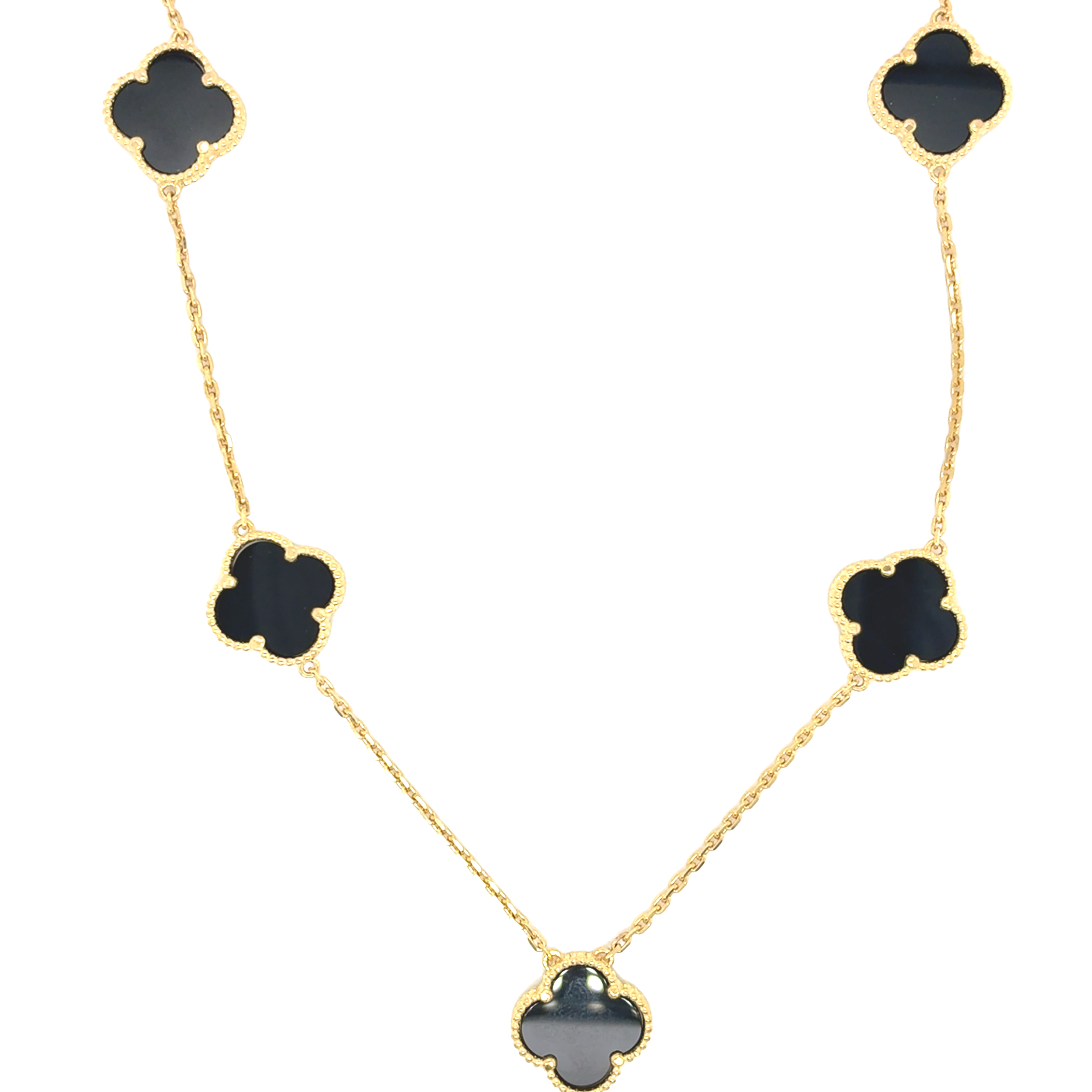 Additional Details: 18" 4-leaf clover reversible necklace in a yellow gold setting