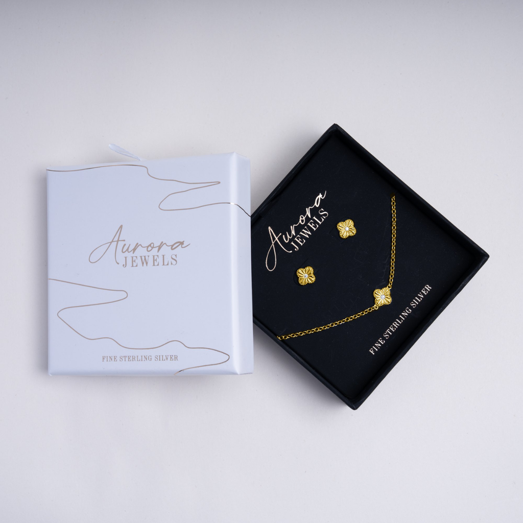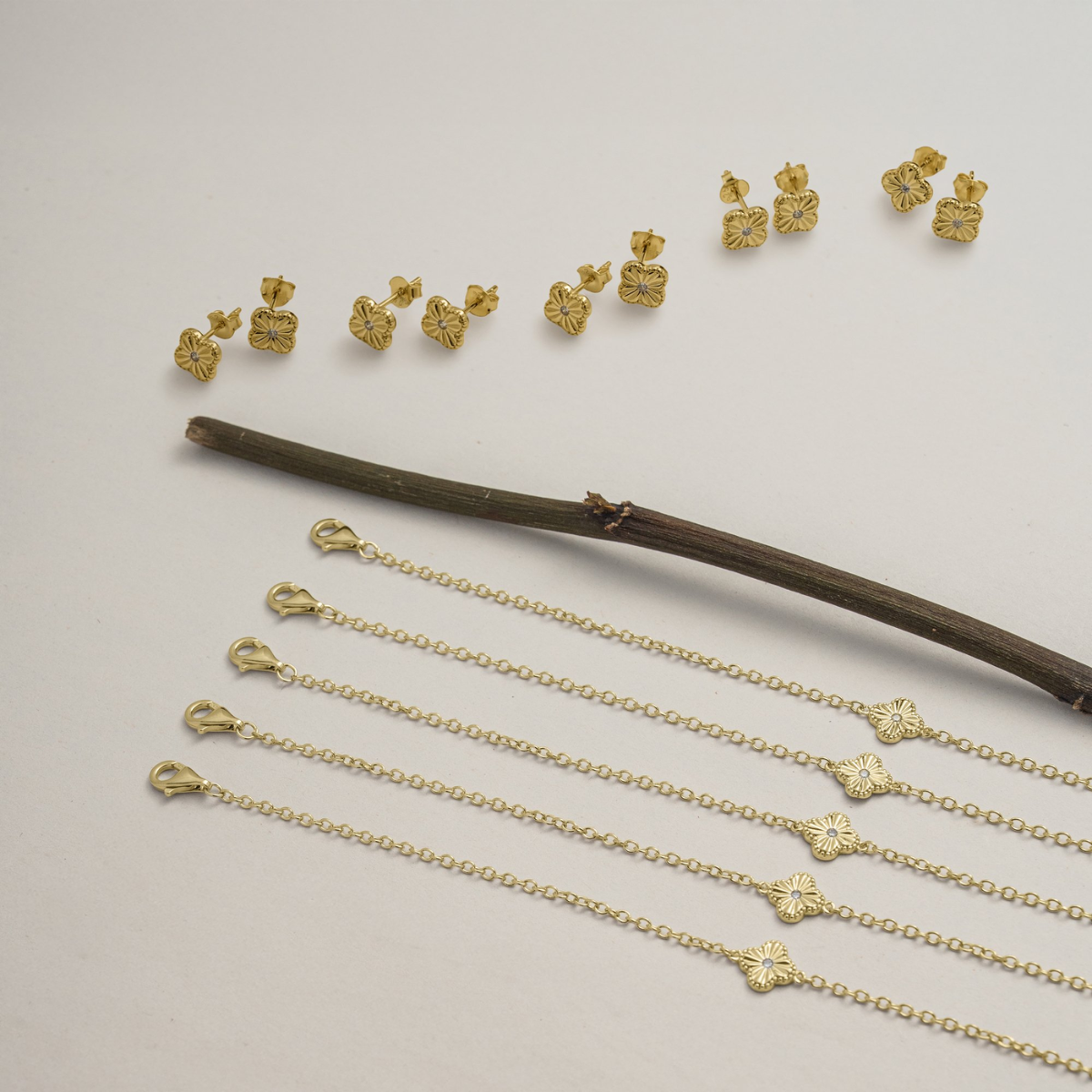 Gold Plated Sterling Silver CZ Clover Bracelet and Earrings - Special Price