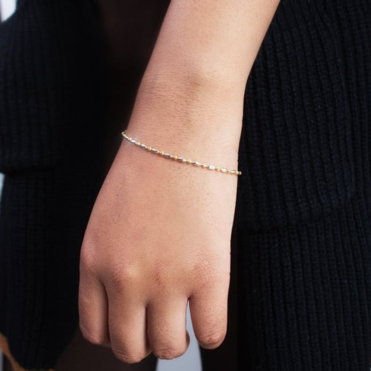 Gold Plated Sterling Silver Two-one 2mm Oval and Moon Bead Bracelet - Special Price