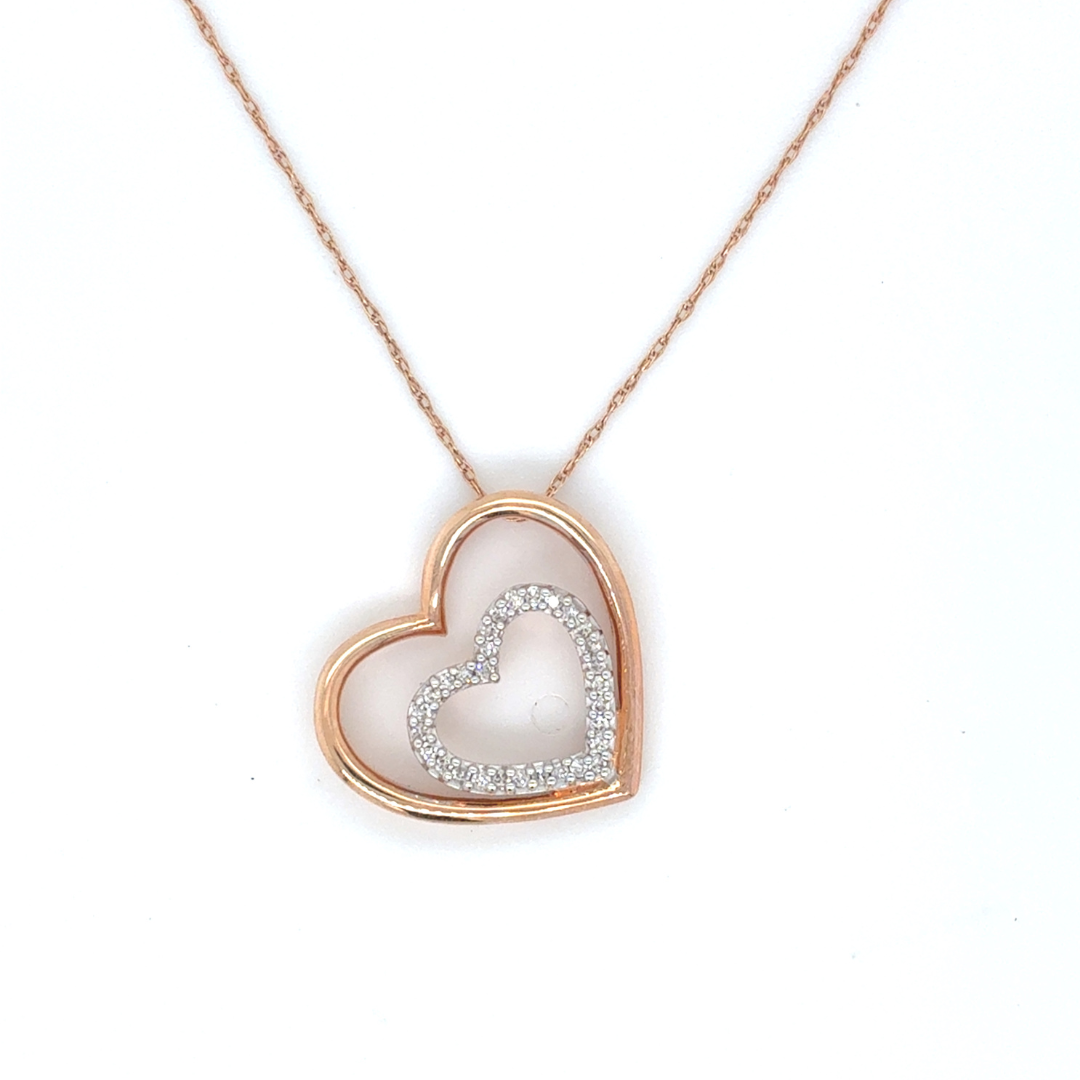 10/14kt White and Rose Gold .12ct Heart Diamond Pendant
