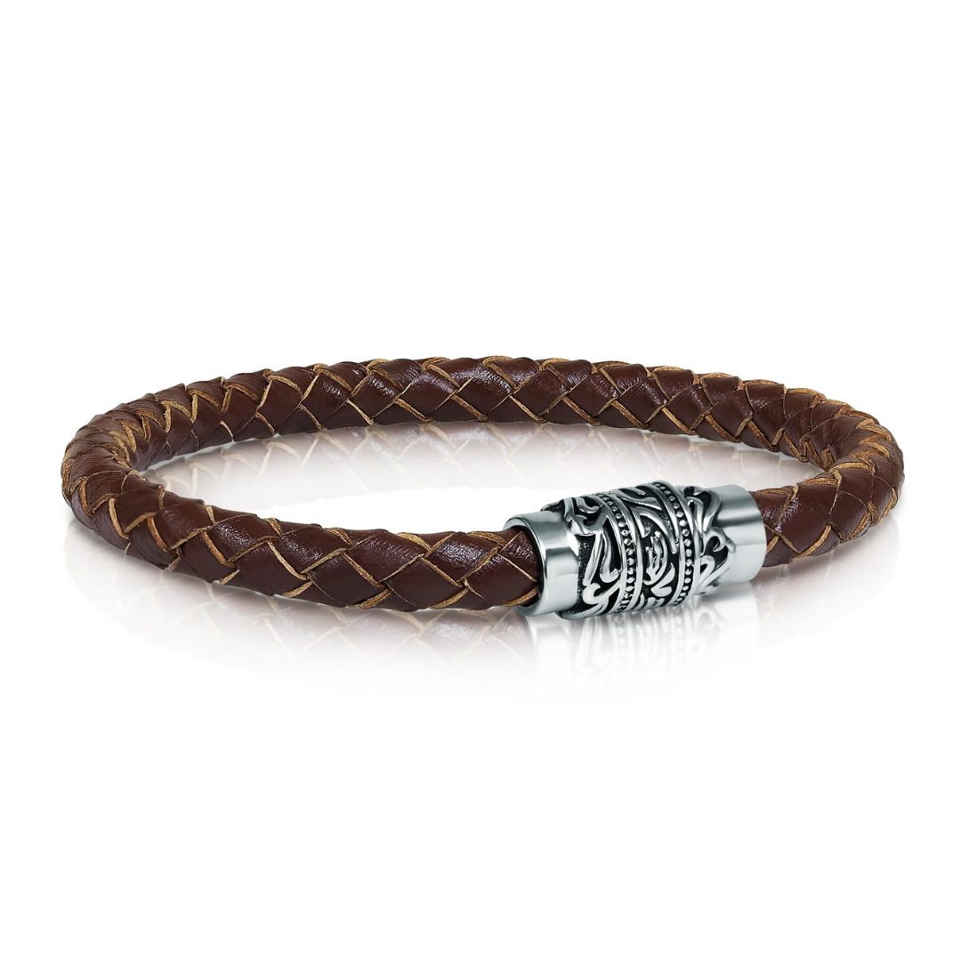 Italgem Stainless Steel Brown Leather Bracelet
