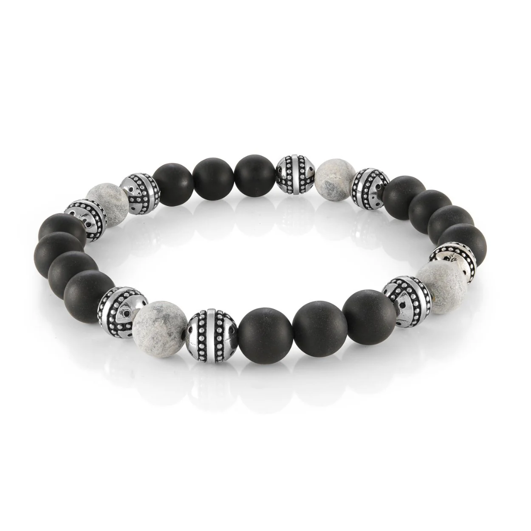 Italgem Stainless Steel Black and Grey Onyx Bead Bracelet
