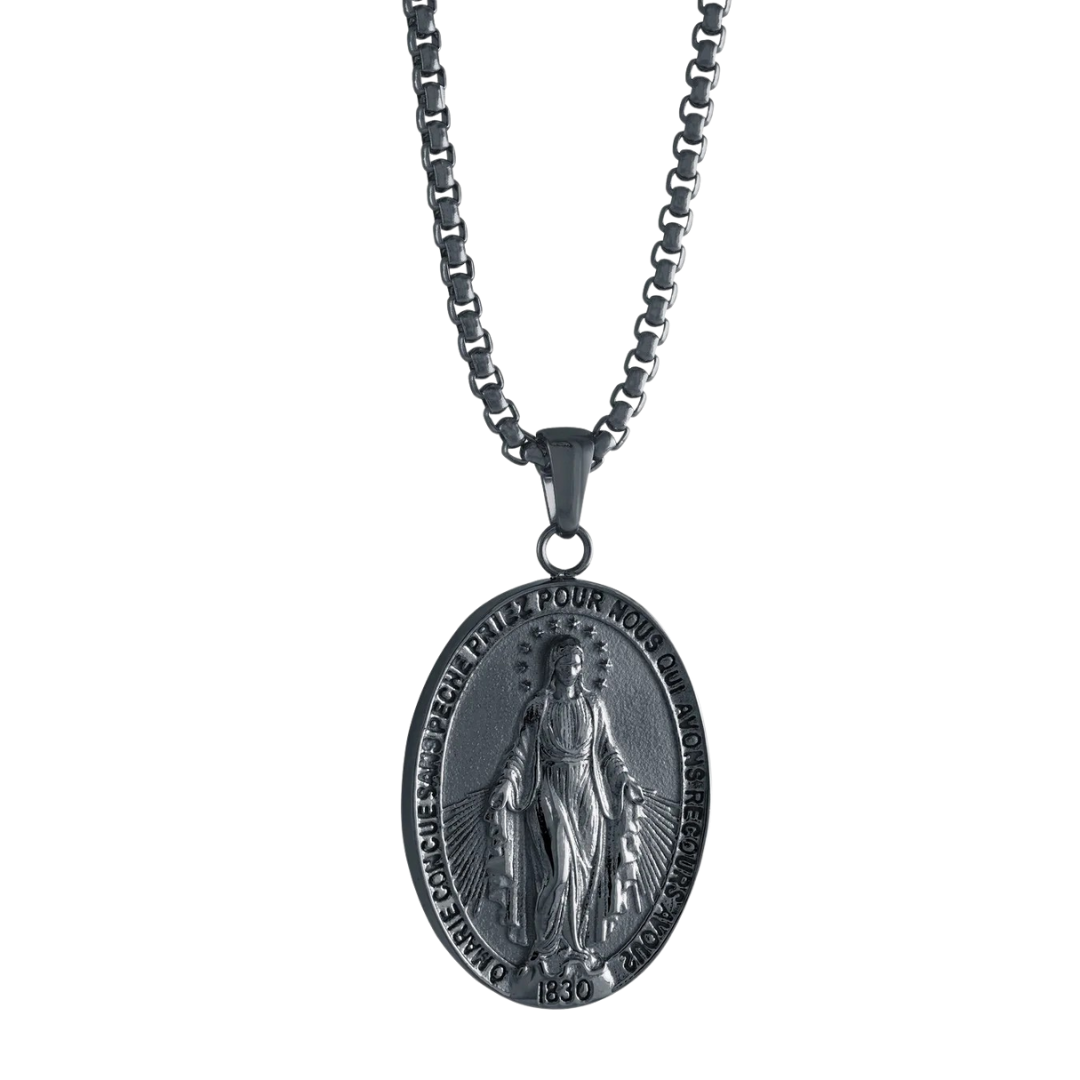Italgem Stainless Steel Black Oval Miraculous Necklace