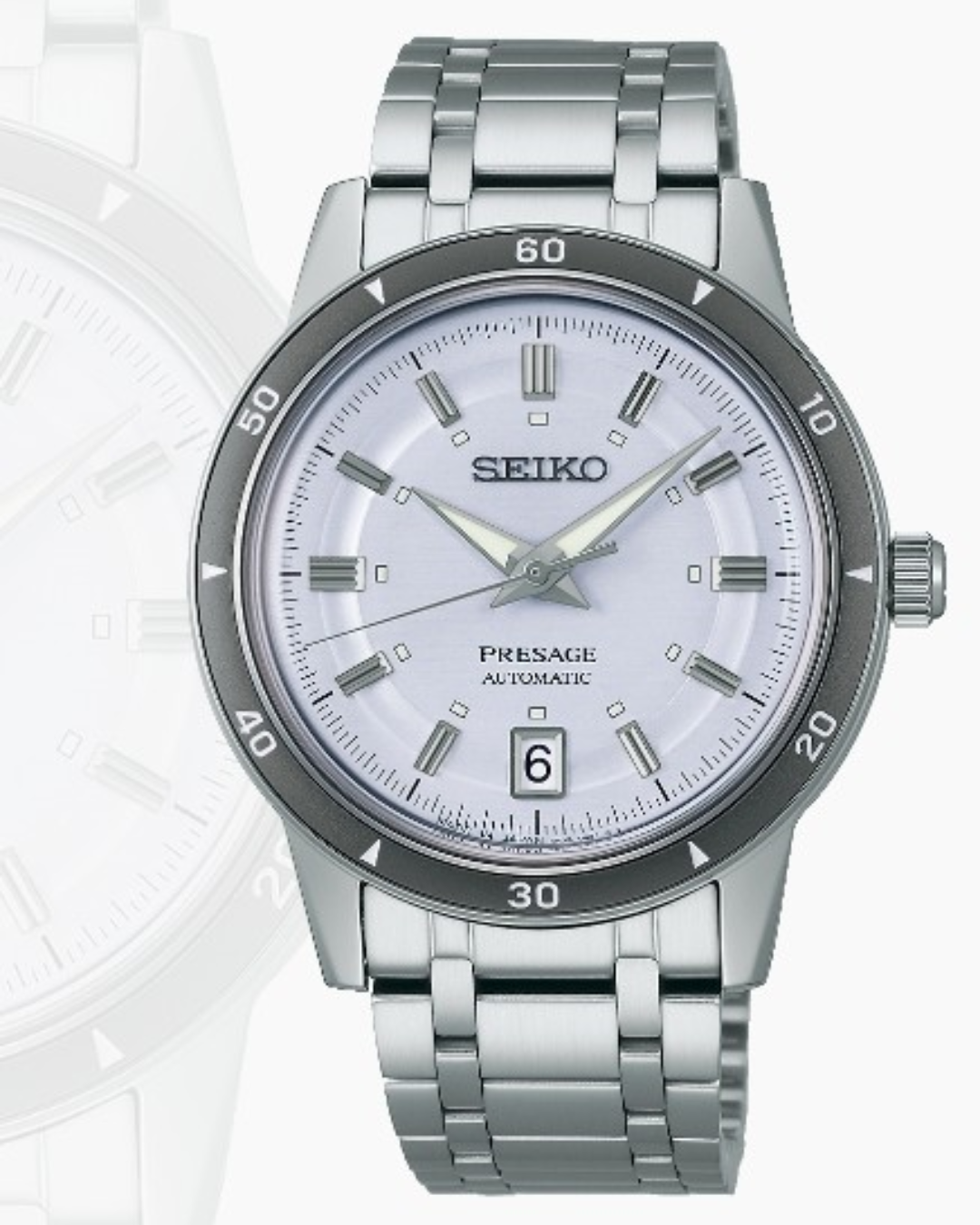 This Seiko watch has a case made of stainless steel with a diameter of : 39.5 mm and is fitted with a stainless steel band. Inside the case lies a Seiko movement and the watch features Box-shaped Hardlex