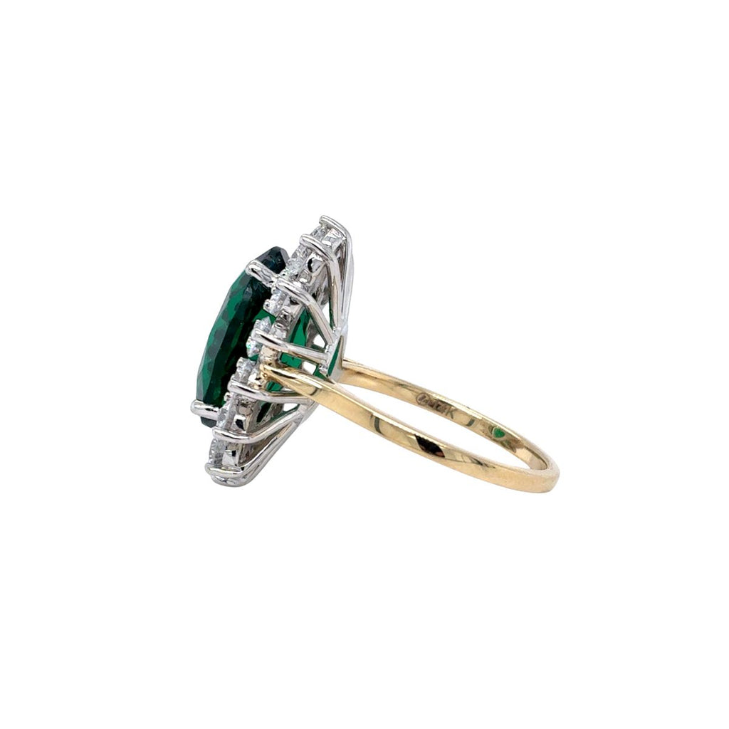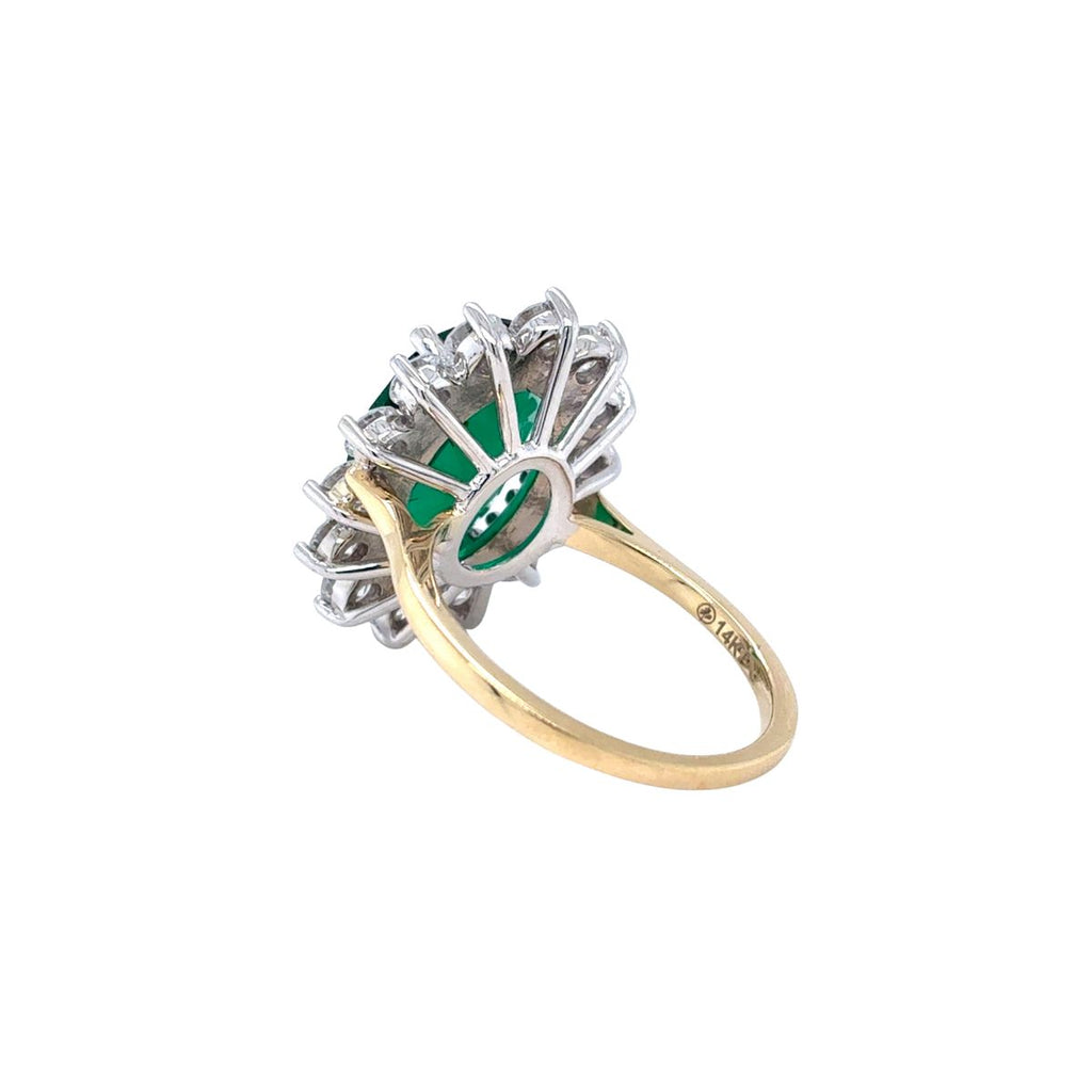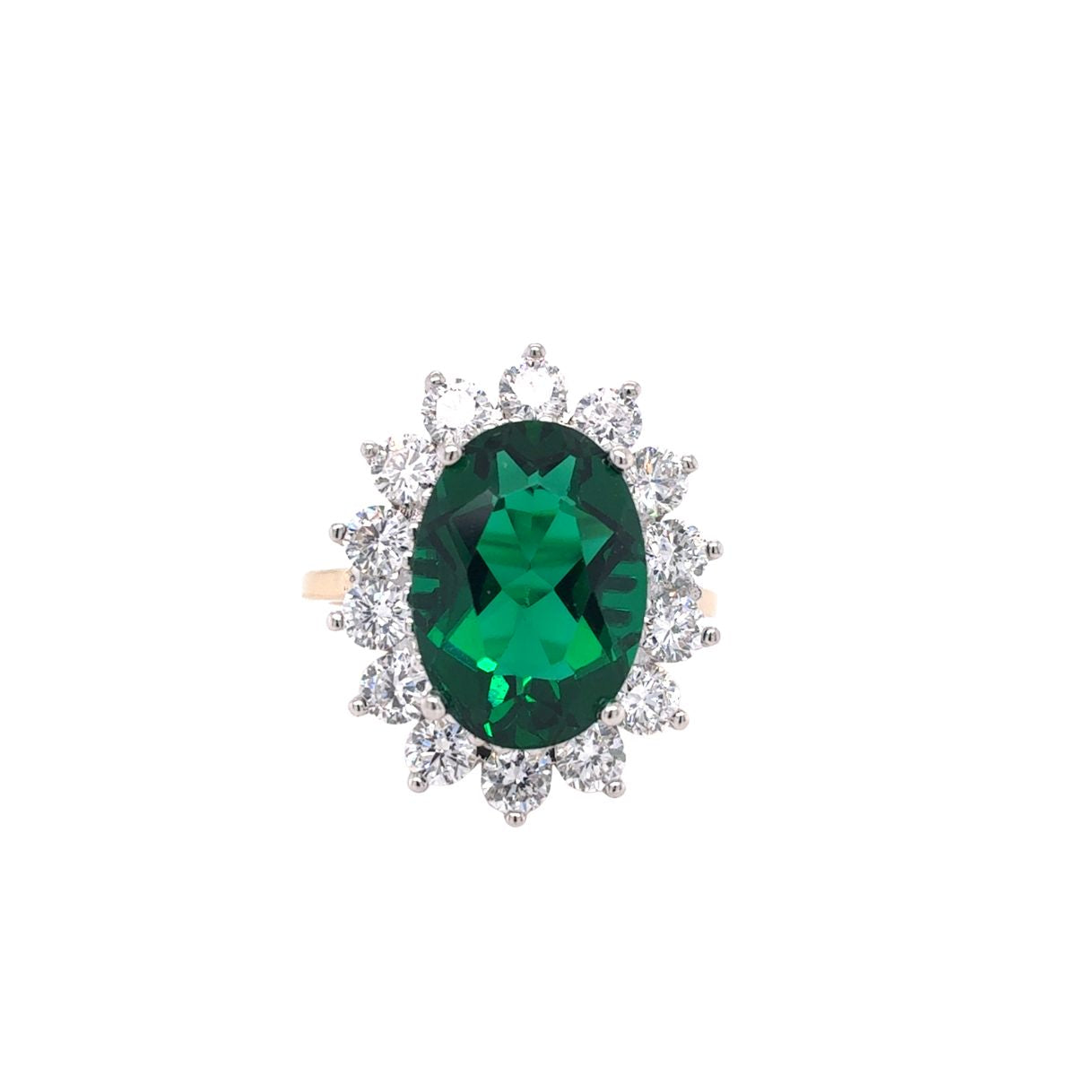 14k Two Tone Lab Grown Oval Emerald and Diamond