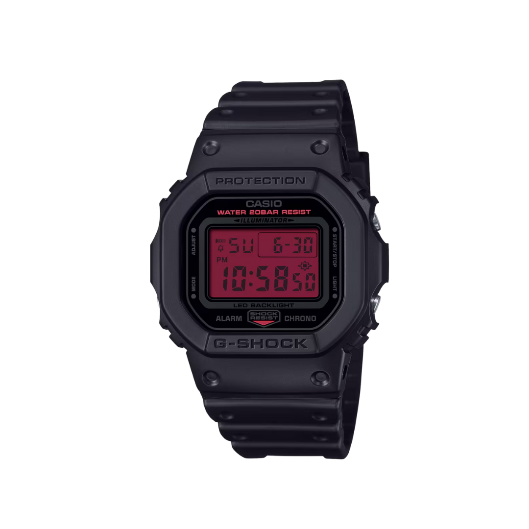 Go bold, tough, and intense, with the G-SHOCK black and red collection.
