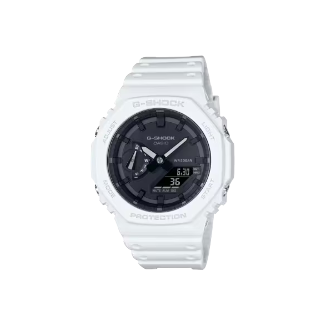 Made of carbon fiber-reinforced fine resin for a thinner, lighter watchcase that is as tough as ever. The simple design and rugged construction features a black dial for a cool, polished look.