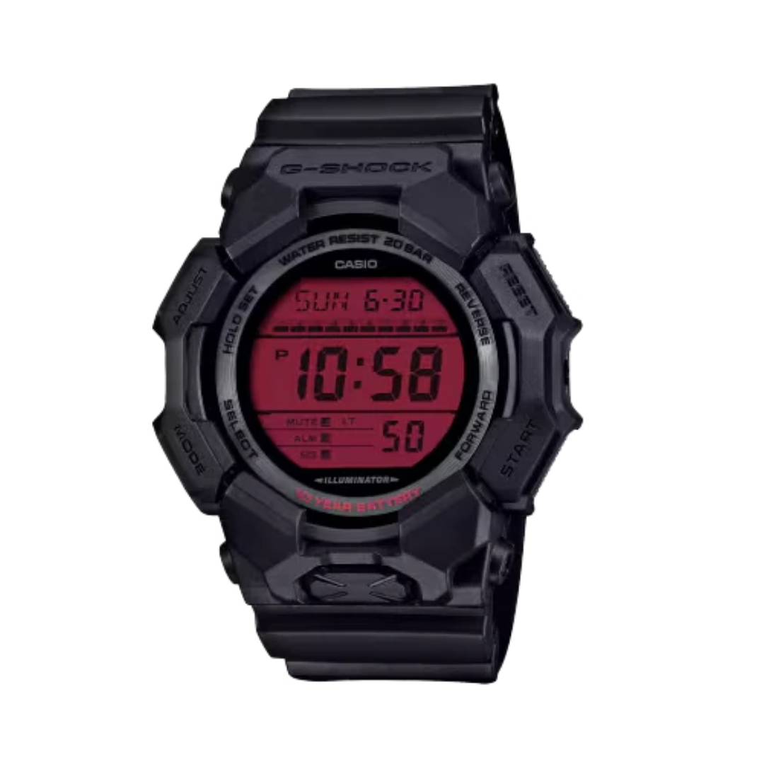 Go bold, tough, and intense, with the G-SHOCK black and red collection.