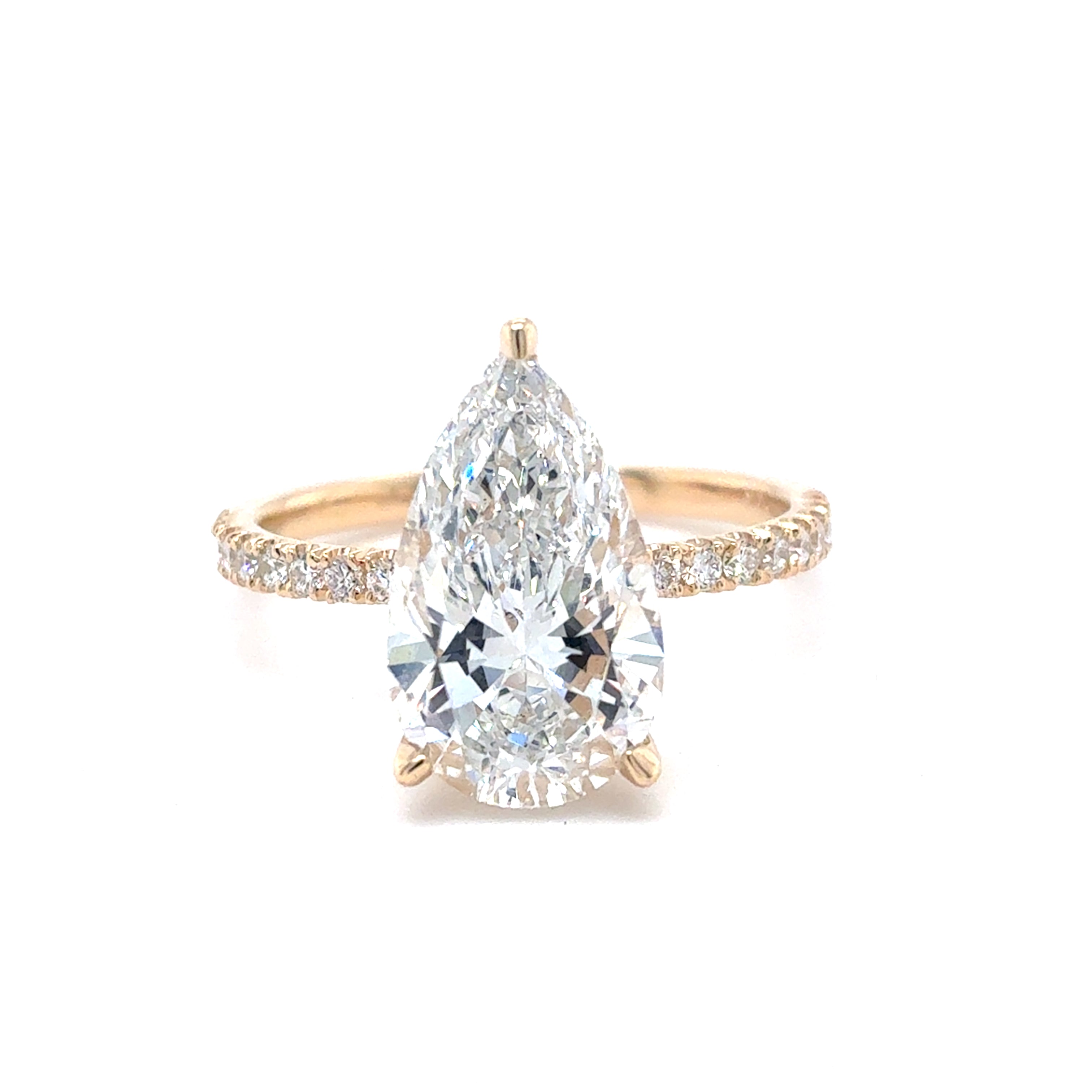 14k Yellow Gold Lab Grown 3.04ct Centre Pear Cut Diamond Engagement Ring