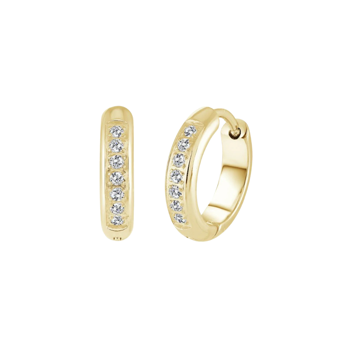 Italgem Stainless Steel Gold Plated Hoop Earrings with CZ